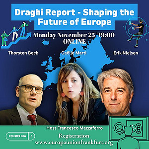 Am 25.11.2024 um 19.00 Uhr findet ein Online-Expertengespräch über den Bericht zur Zukunft der Wettbewerbsfähigkeit der Europäischen Union, den sogenannten Draghi-Report, statt. Das Expertengespräch wird in englischer Sprache geführt und ist eine Kooperationveranstaltung mehrerer Kreis- und Landesverbände der Europa-Union und ihrer Partnerverbände aus Frankreich und Italien.